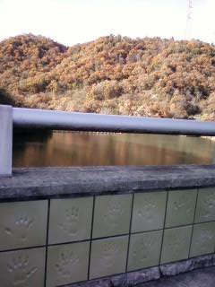 卒業生たちの手形が残るダム。